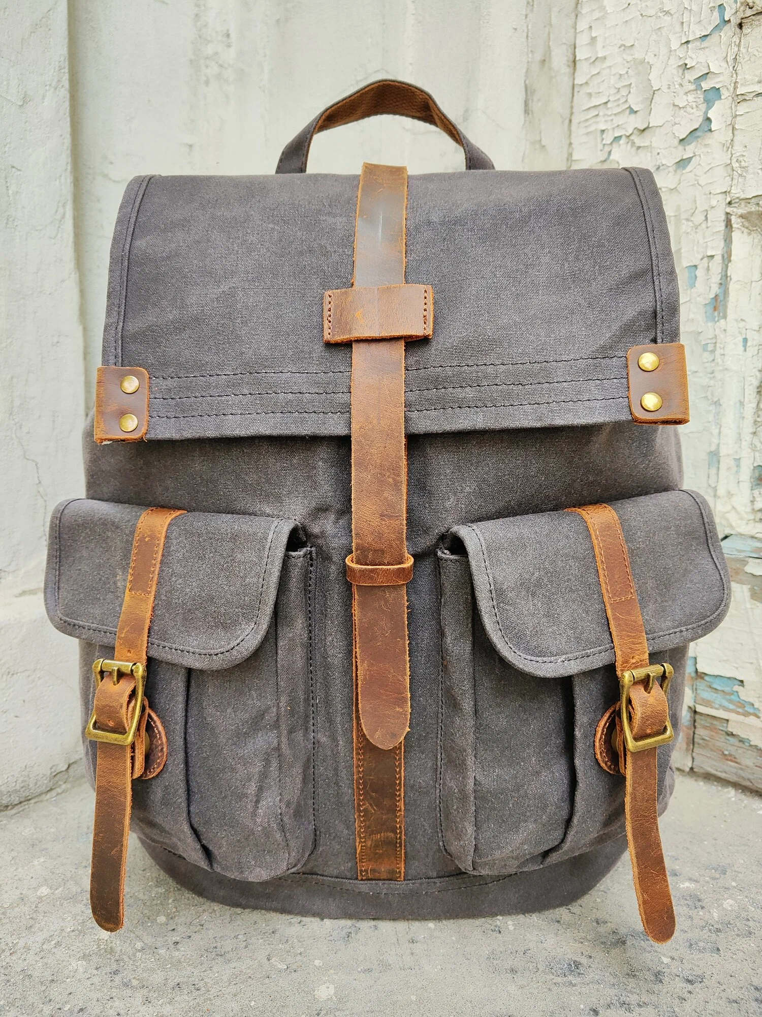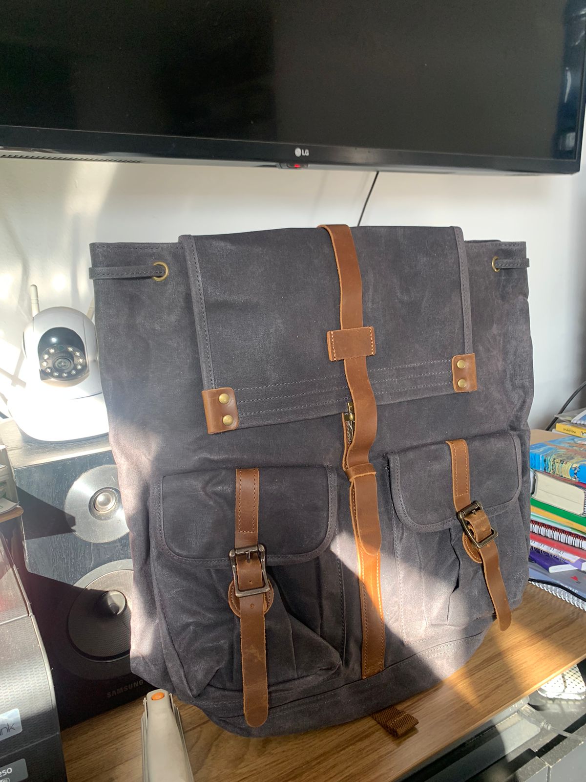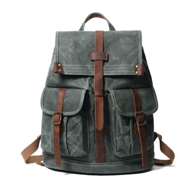 ✔️ Lona encerada y cuero genuino, robustos y duraderos.