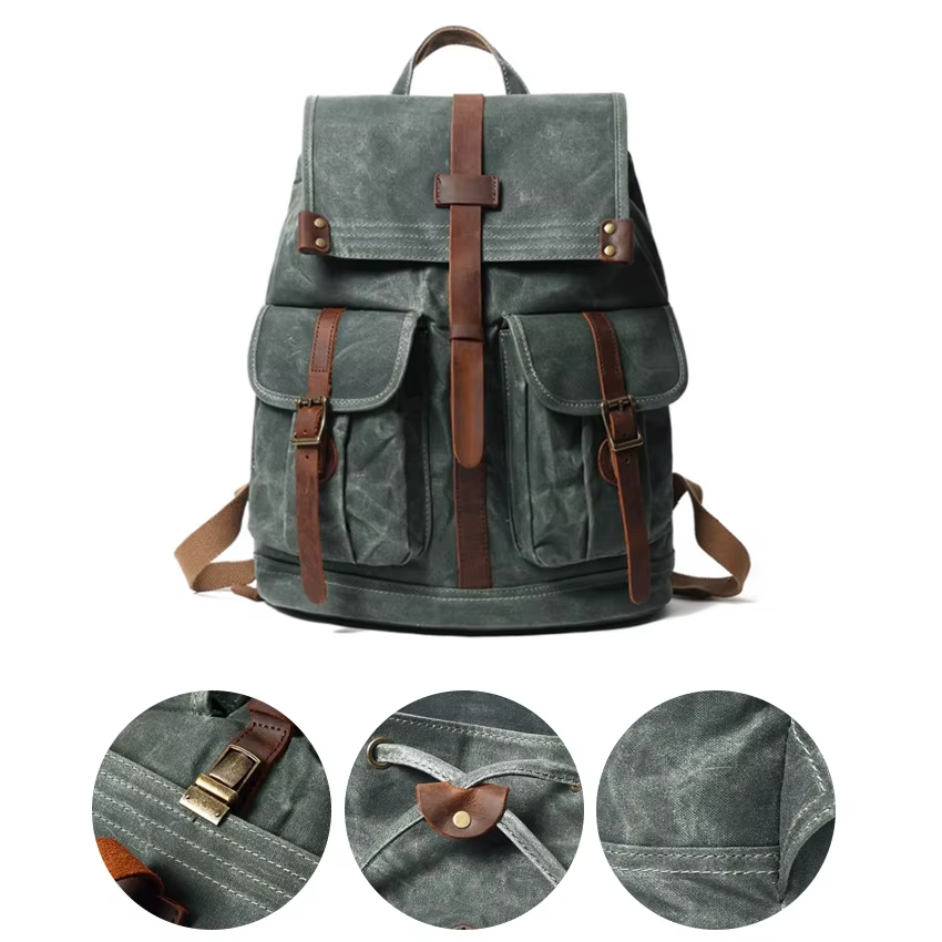 El cuero genuino y la lona resistente al agua protegen tus pertenencias frente a la lluvia o el viento, mientras mantienes un estilo elegante y atemporal en cualquier temporada.