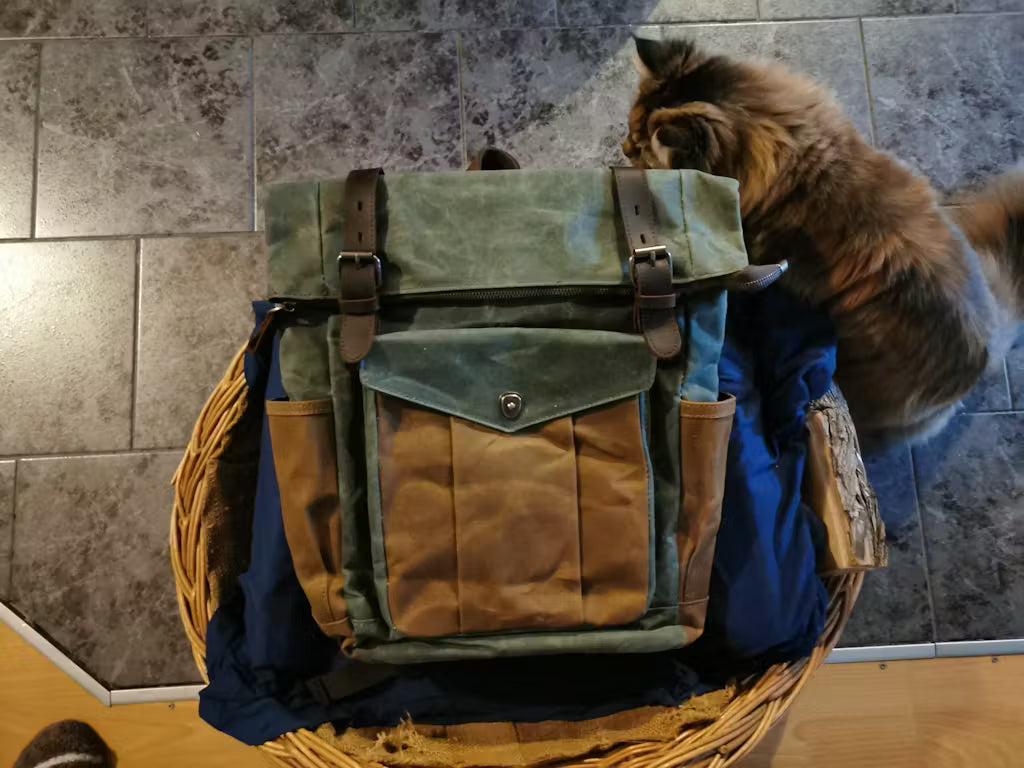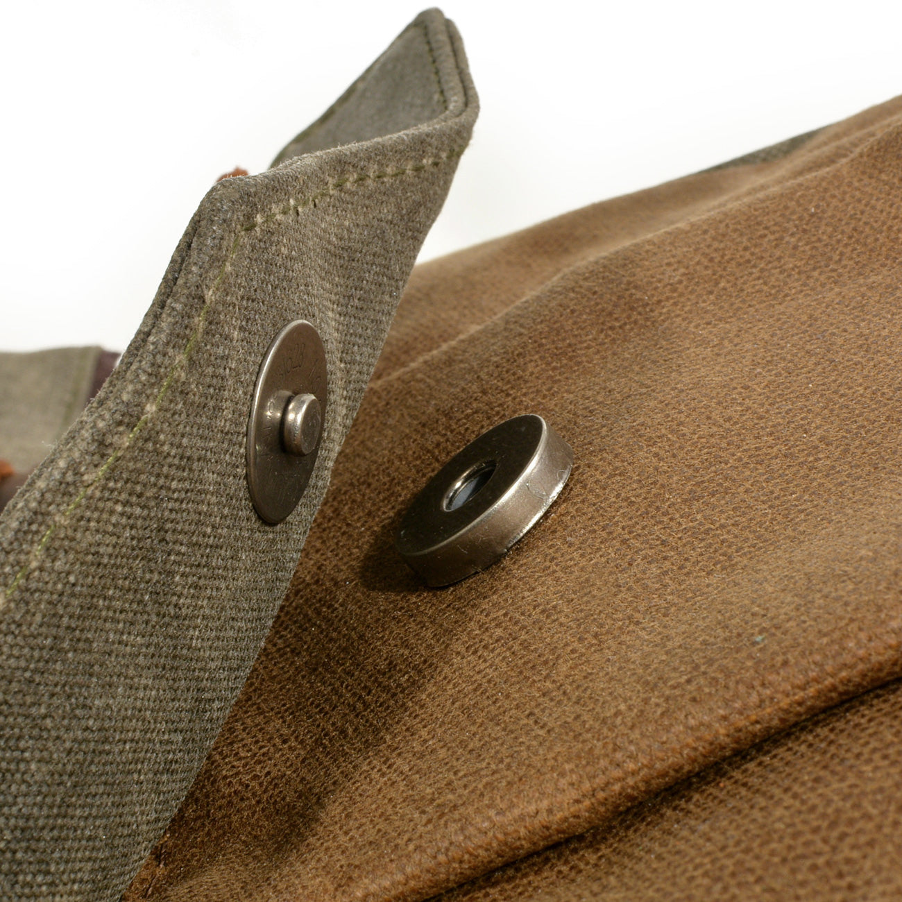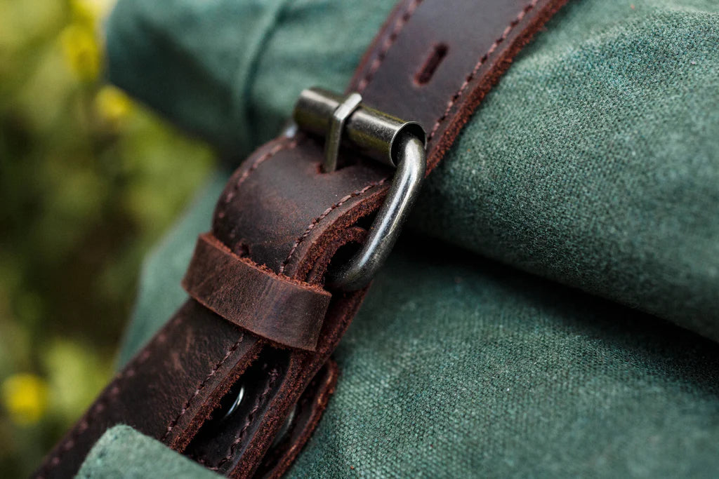 ✔️ Lona encerada y cuero genuino, robustos y duraderos.