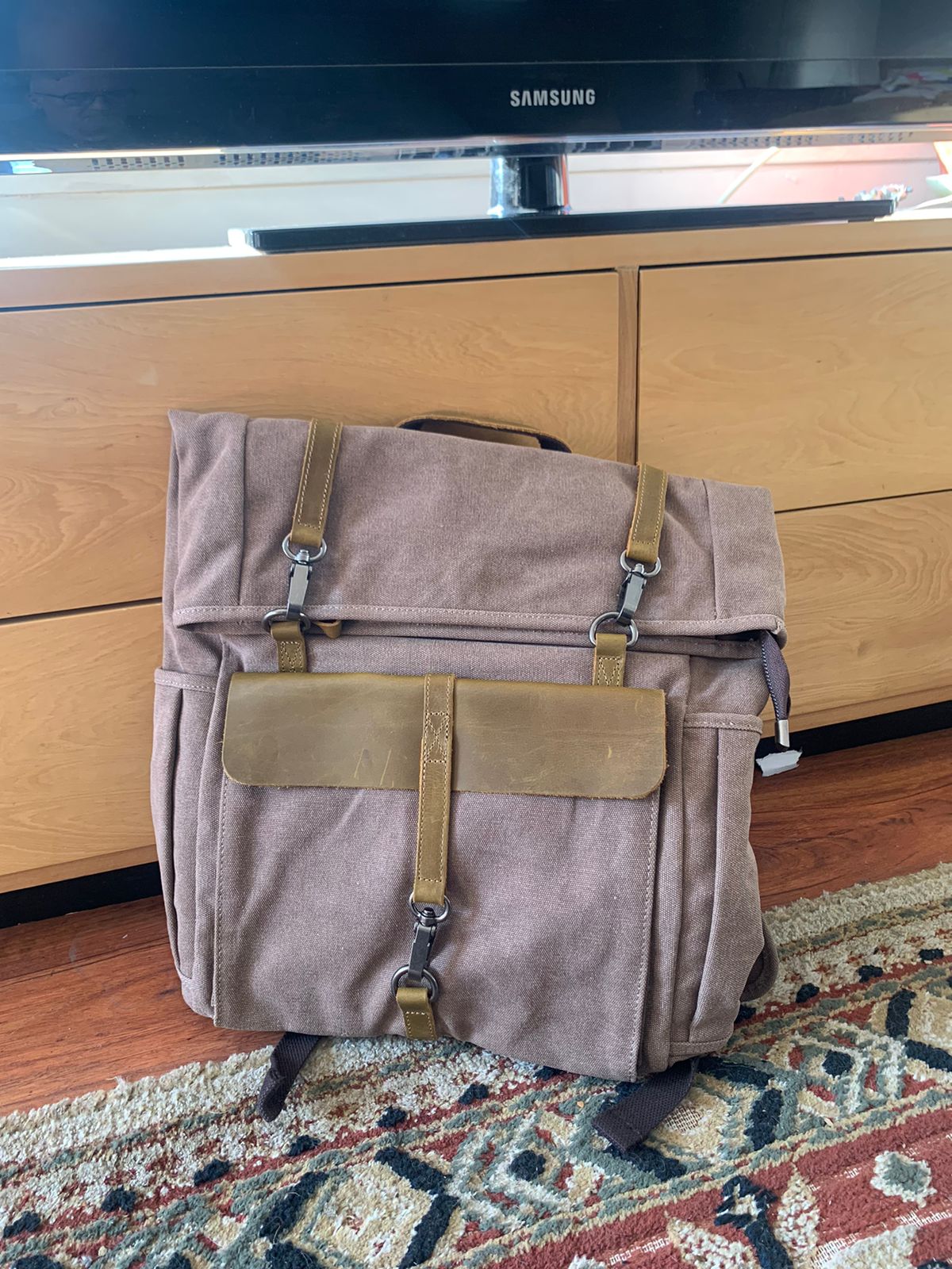 ✔️ Lona encerada y cuero genuino, robustos y duraderos.